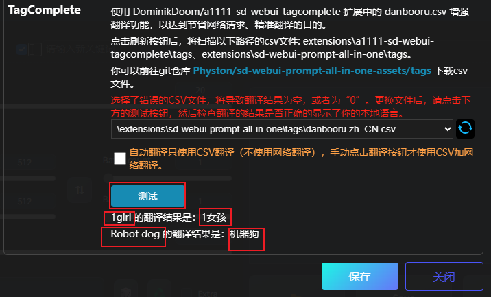 This function does not require you to install the a1111-sd-webui-tagcomplete extension. You can directly put the translated CSV file into the