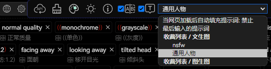 禁止选中后,网页加载后不会自动填充提示词。最后输入的提示词选中后,网页加载后会自动填充你上一次输入的提示词(历史记录中的最新一条数据)。收藏夹选中后,网页加载后会自动填充你收藏夹中选中的提示词。